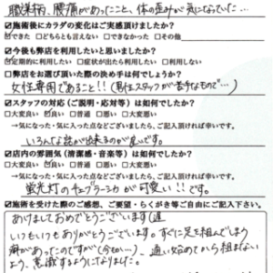 【口コミ】身体のメンテナンスでご来院|ebataroさま(40代/女性/会社員)