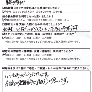 - 施術を受けた際のご感想、ご要望・らくがき等ご自由にご記入下さい。