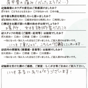 【口コミ】背中の張りでご来院|尾崎さま(40歳/女性/会社員)