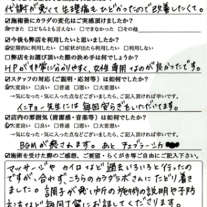 施術を受けた際のご感想、ご要望・らくがき等ご自由にご記入下さい。