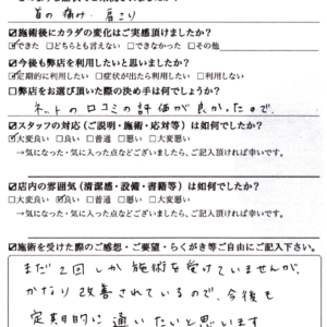 - 「施術していただいて、ちゃんと仰向けで眠れるようになりました。